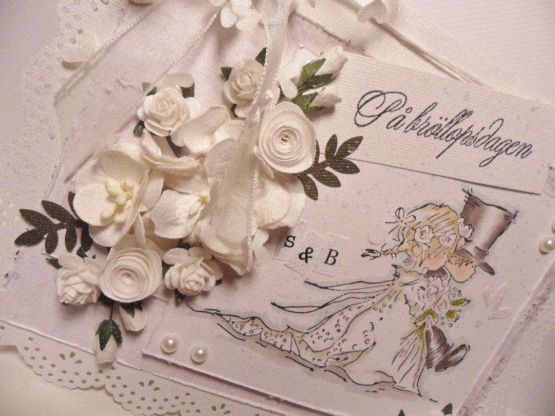 Ett riktigt vackert bröllopskort du gjort. Så söööt stämpel och som vanligt så läckert målat och dekorerat. Du är så duktig:))